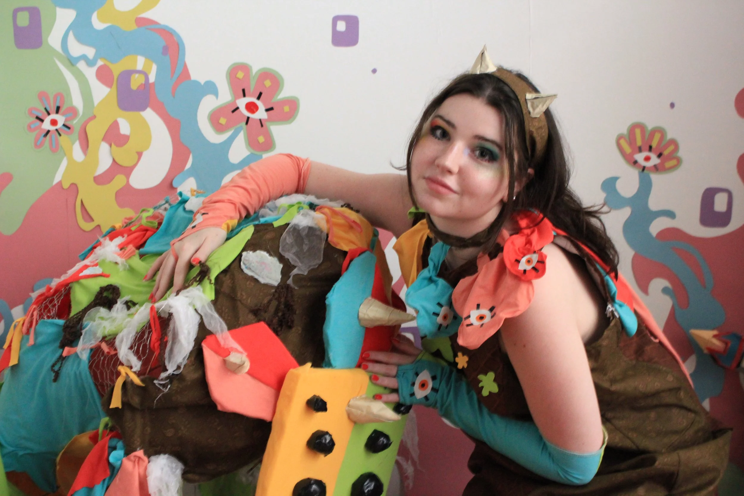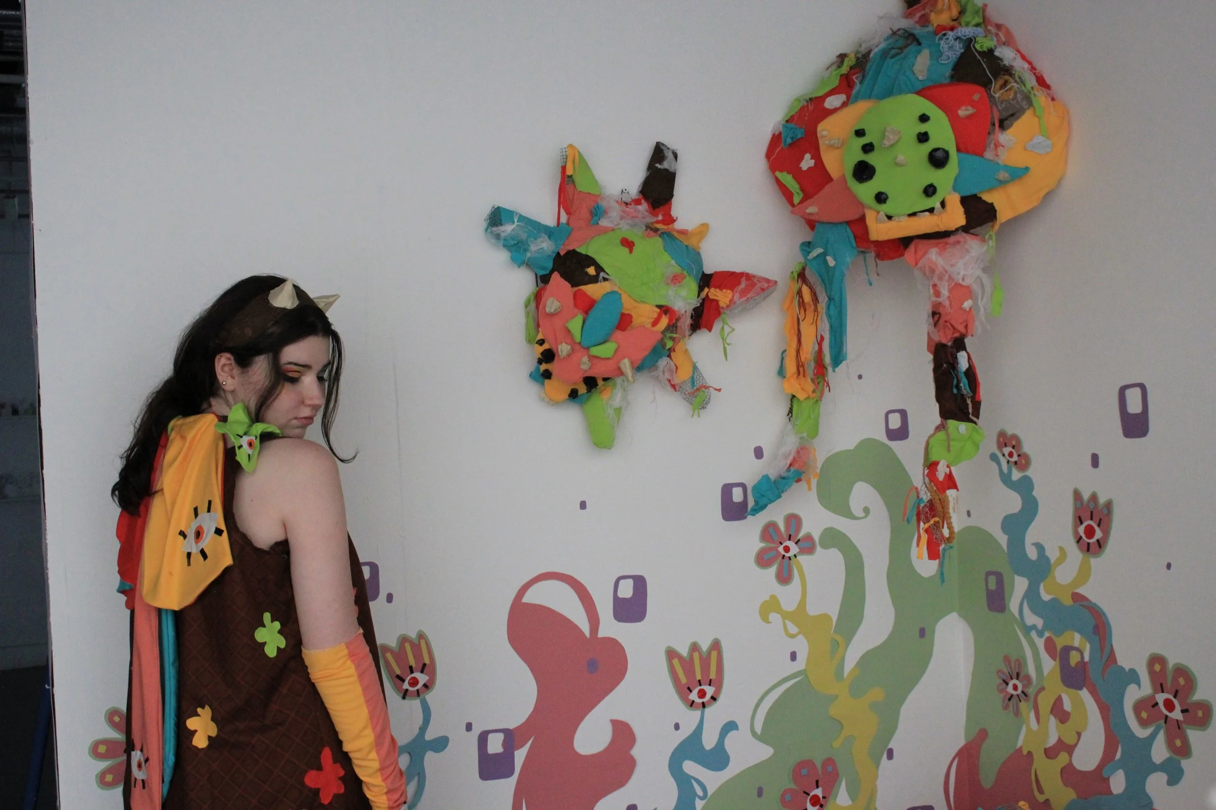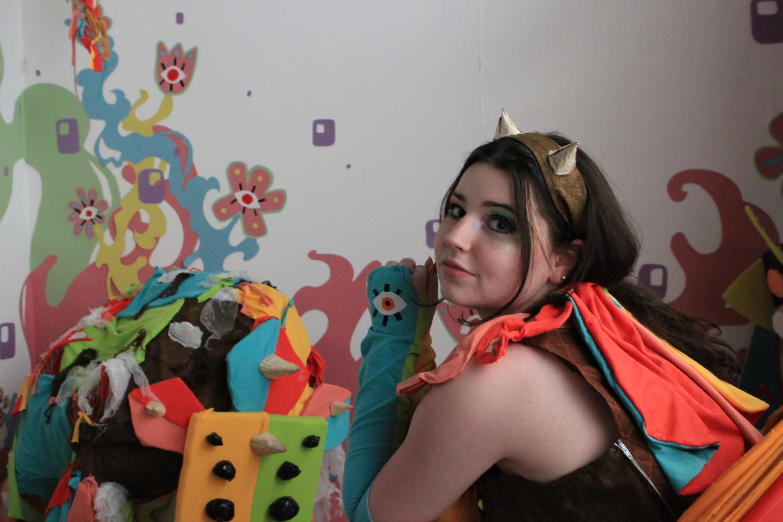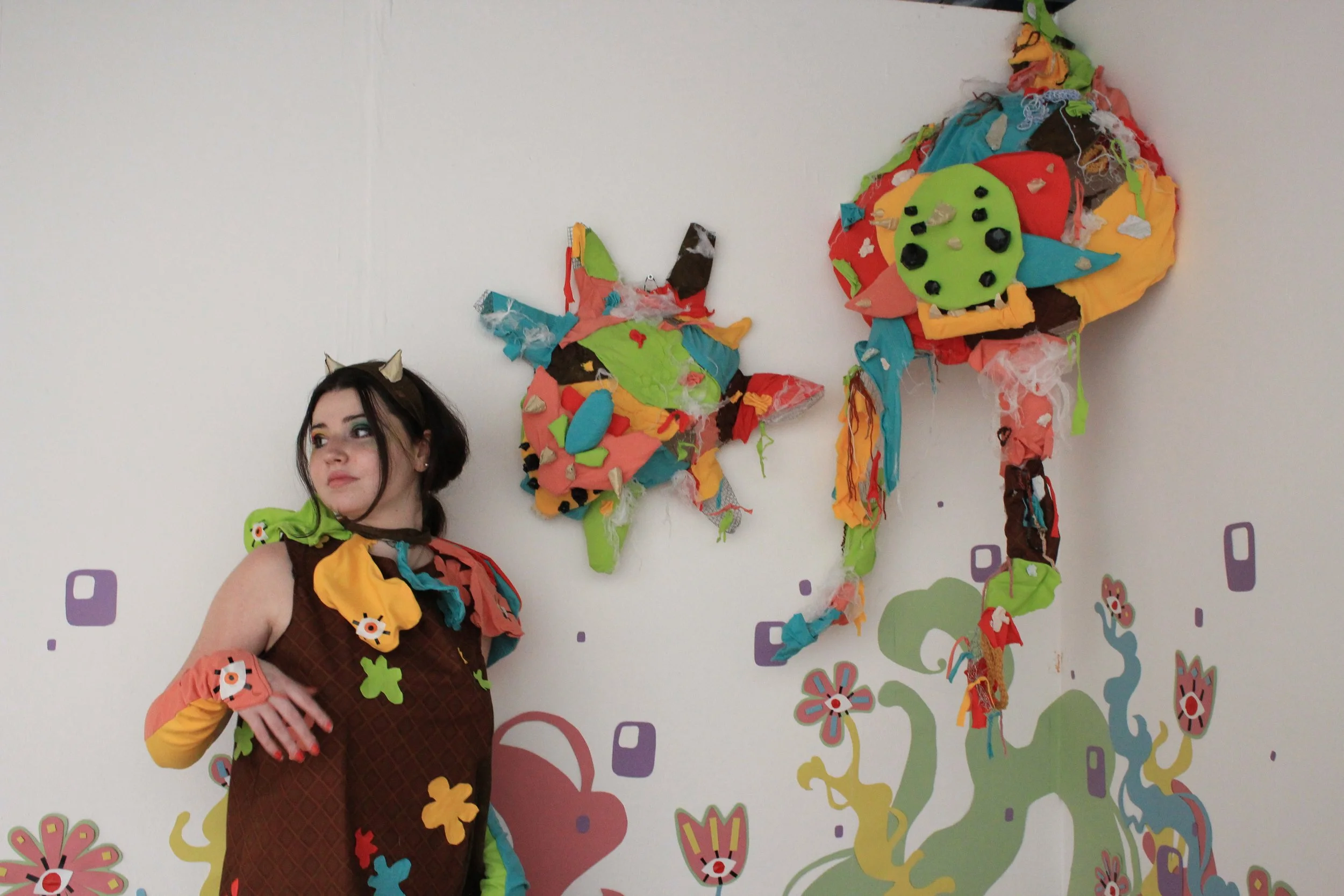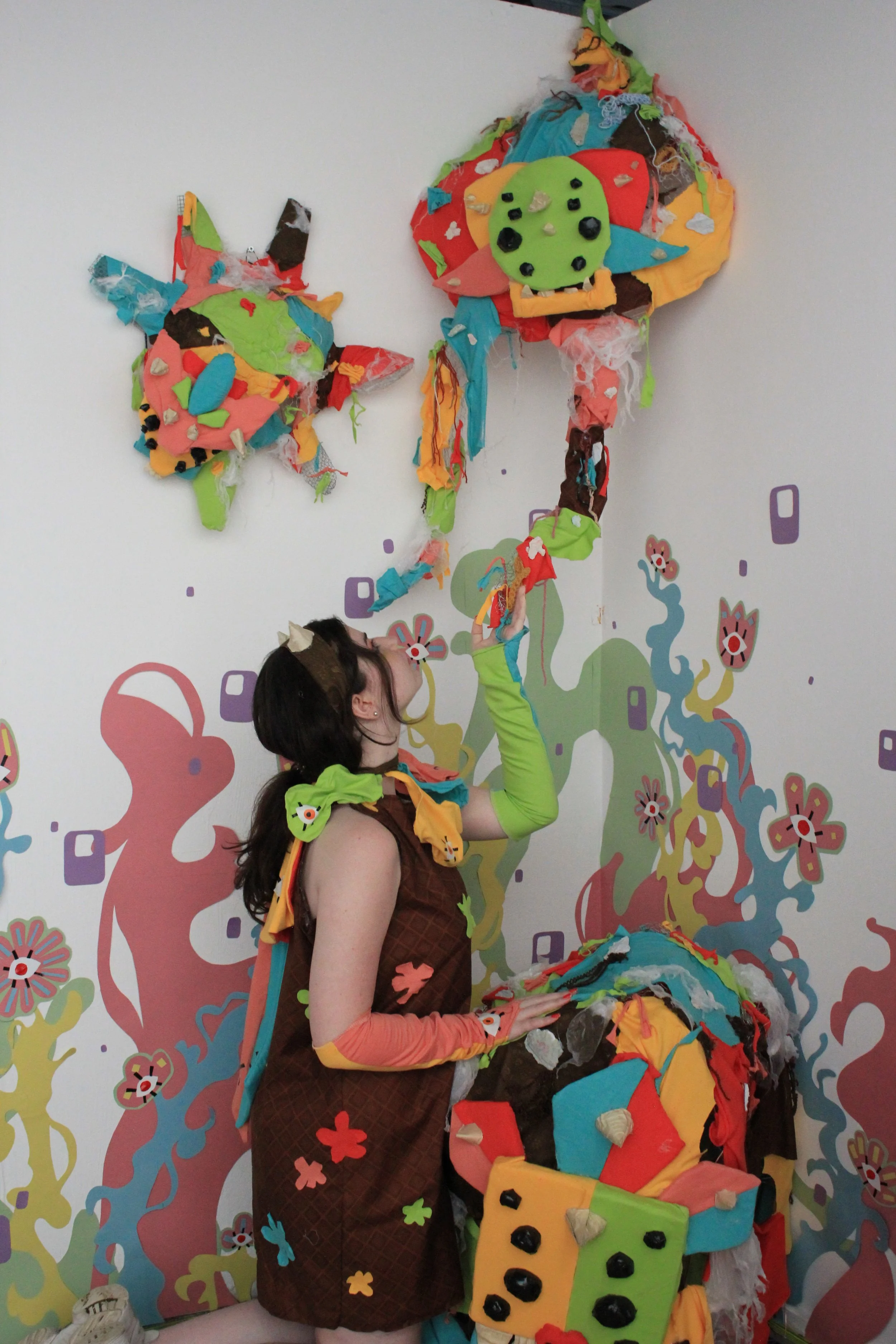 This was my final major project in Art Foundation. The main inspiration for this project was 60s and 70s retrofuturism as well as Japanese ‘tokusatsu’ shows from the 80s. The costumes I produced during this project were made with both standard and unconventional materials including knit, cotton, elastane, foam, cardboard and foil. I also used metalwork to create textile aliens for the final exhibition and vinyl electrical tape to create patterns on the floors.
