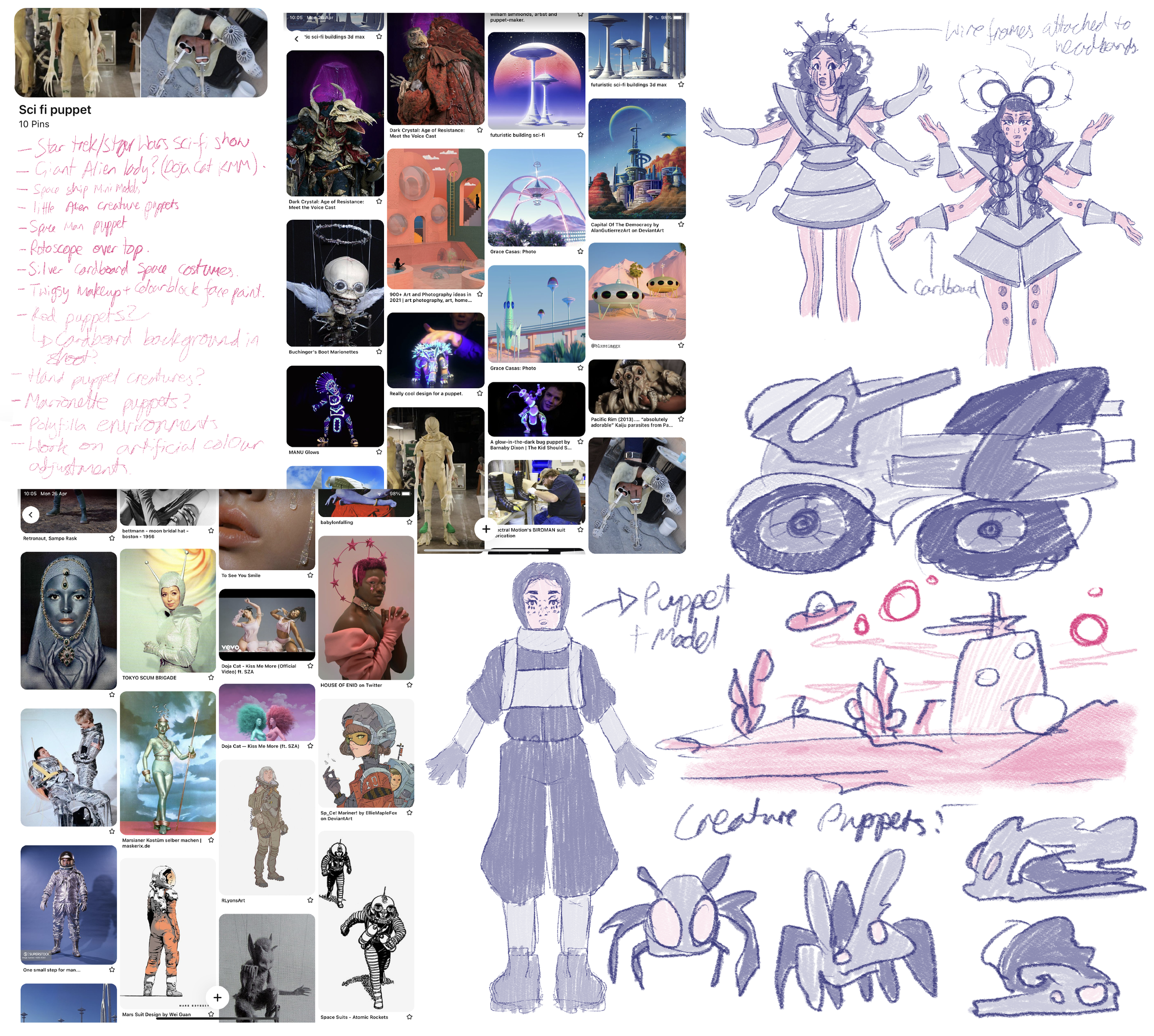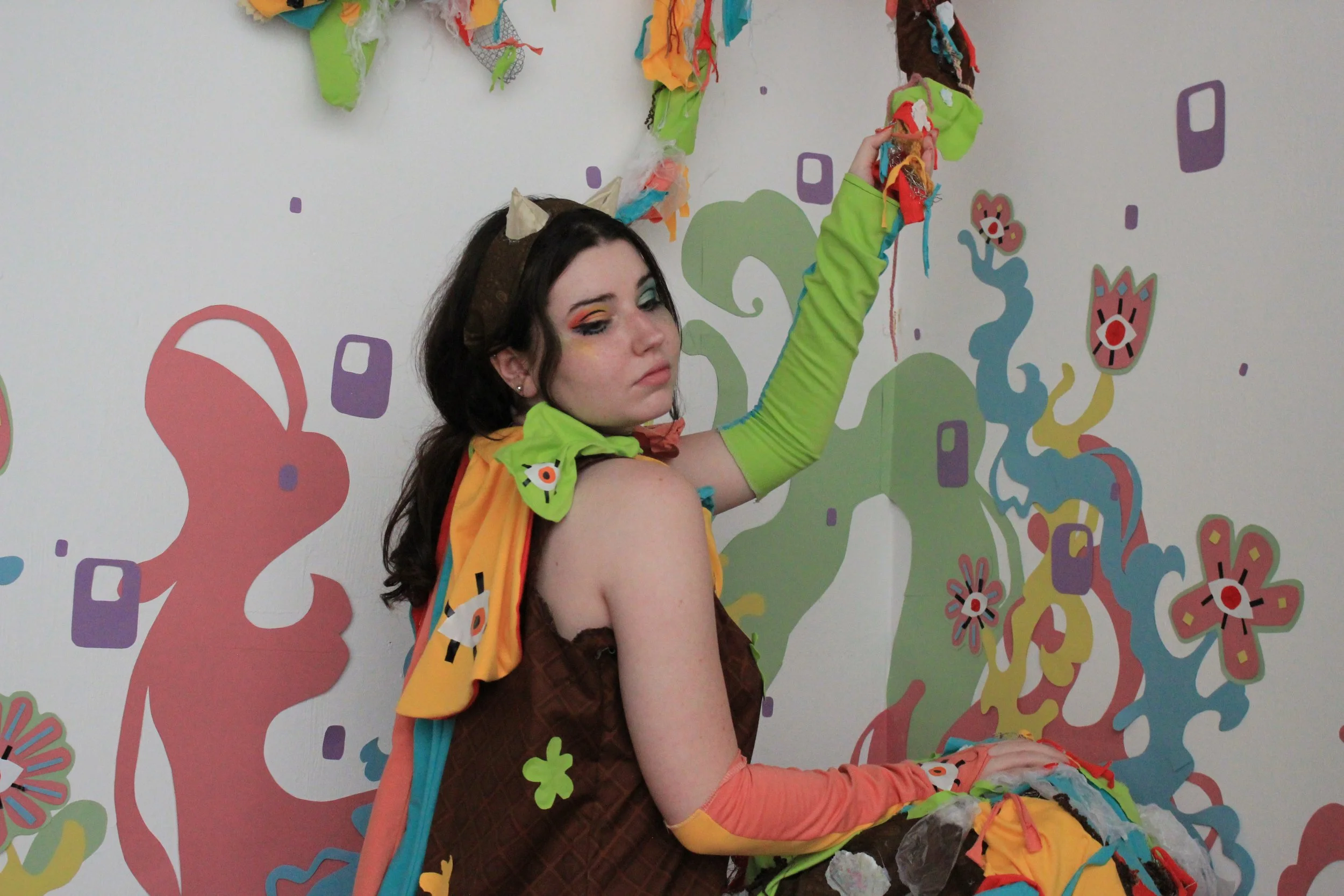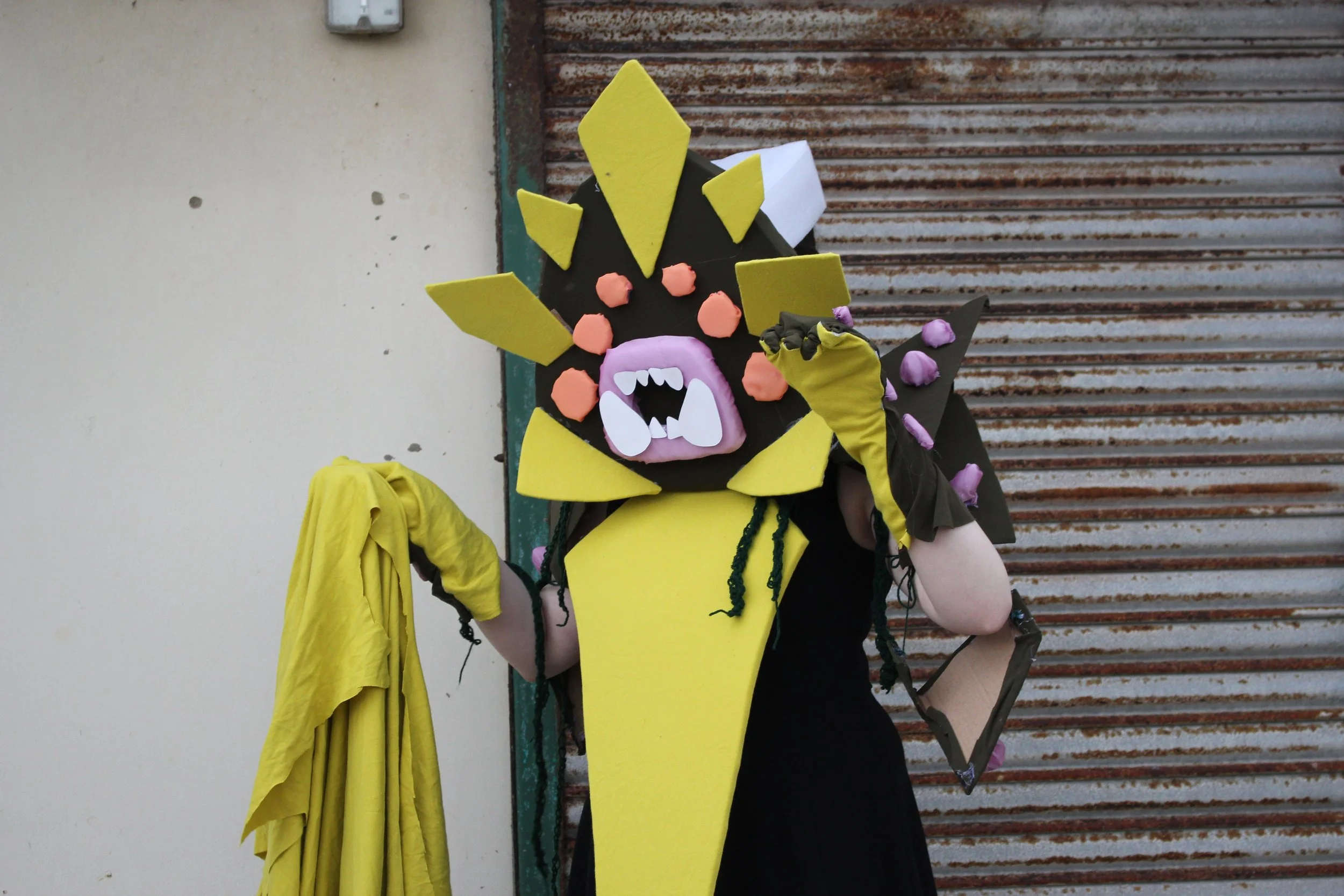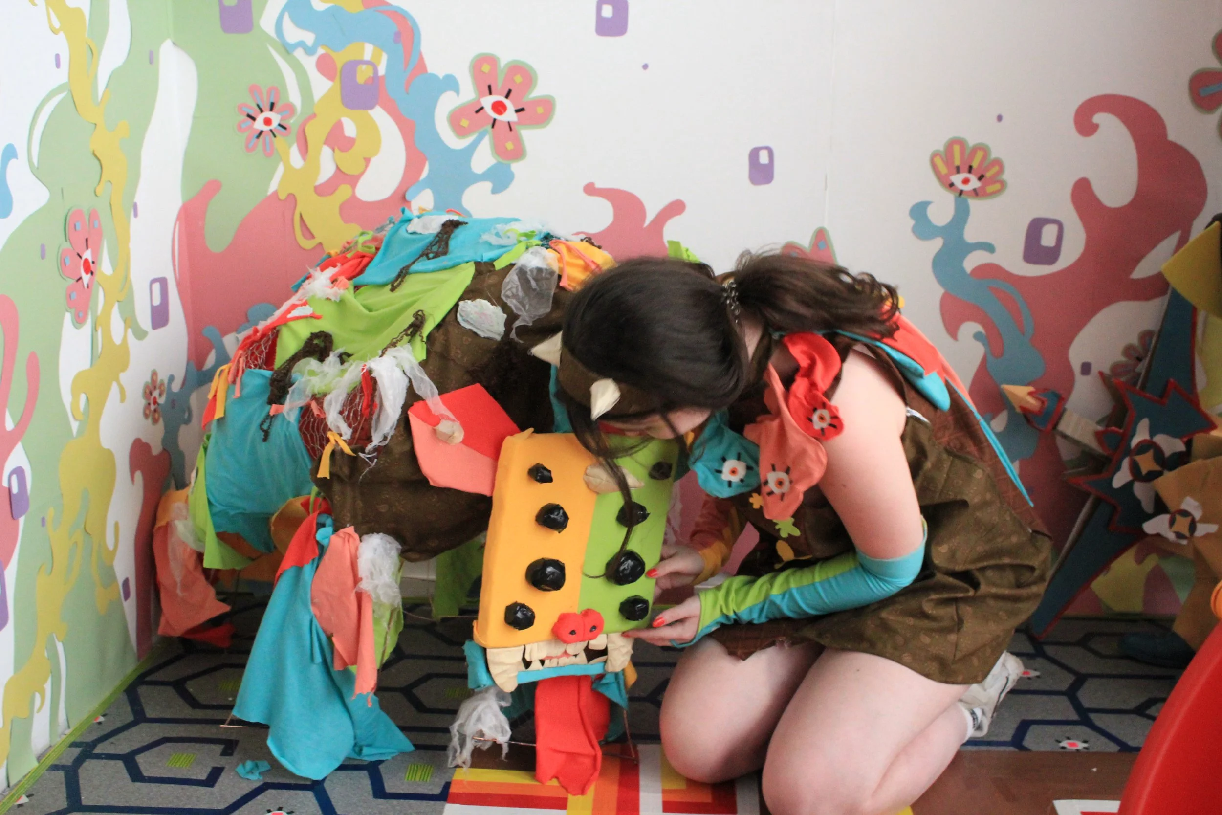 This was my final major project in Art Foundation. The main inspiration for this project was 60s and 70s retrofuturism as well as Japanese ‘tokusatsu’ shows from the 80s. The costumes I produced during this project were made with both standard and unconventional materials including knit, cotton, elastane, foam, cardboard and foil. I also used metalwork to create textile aliens for the final exhibition and vinyl electrical tape to create patterns on the floors.