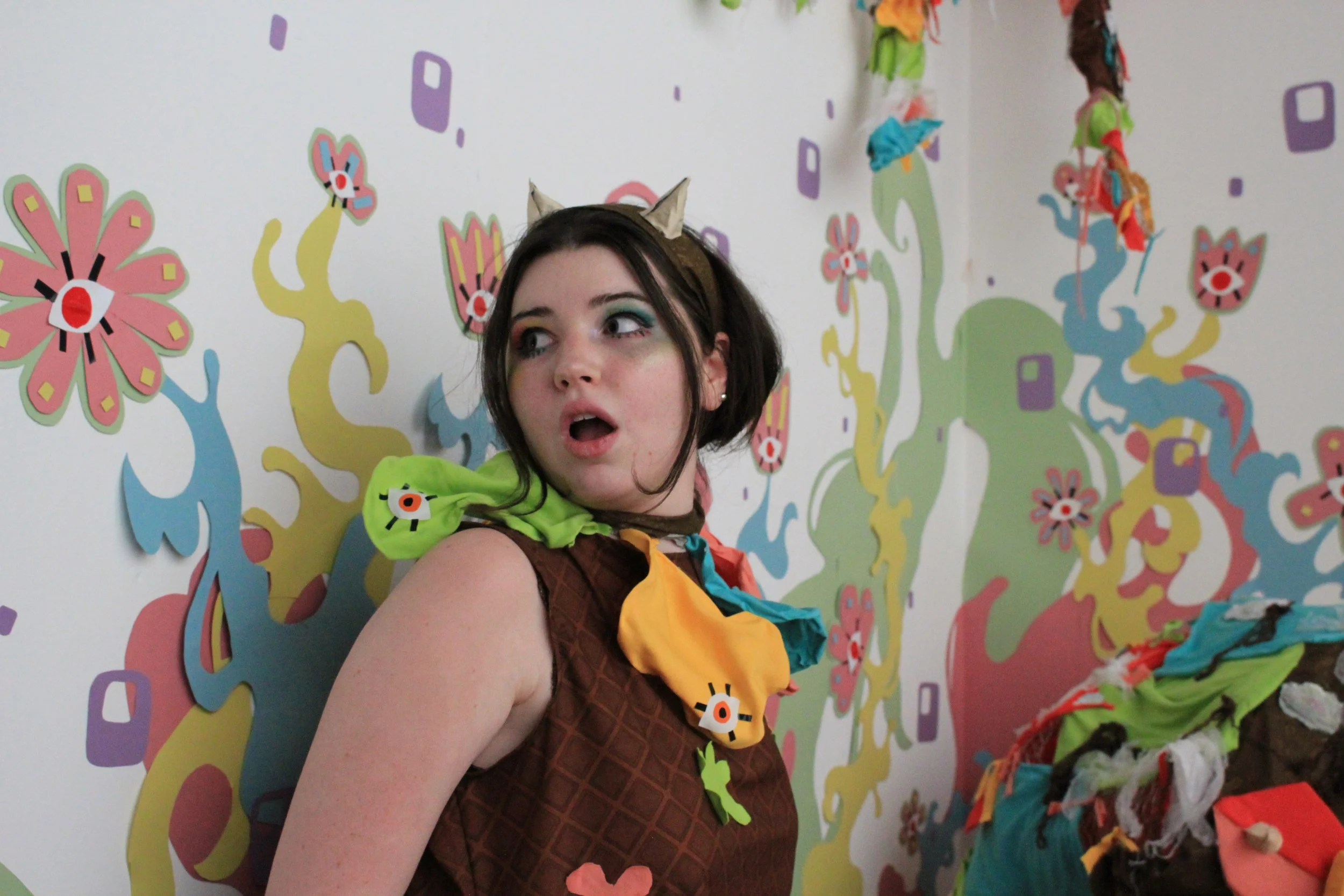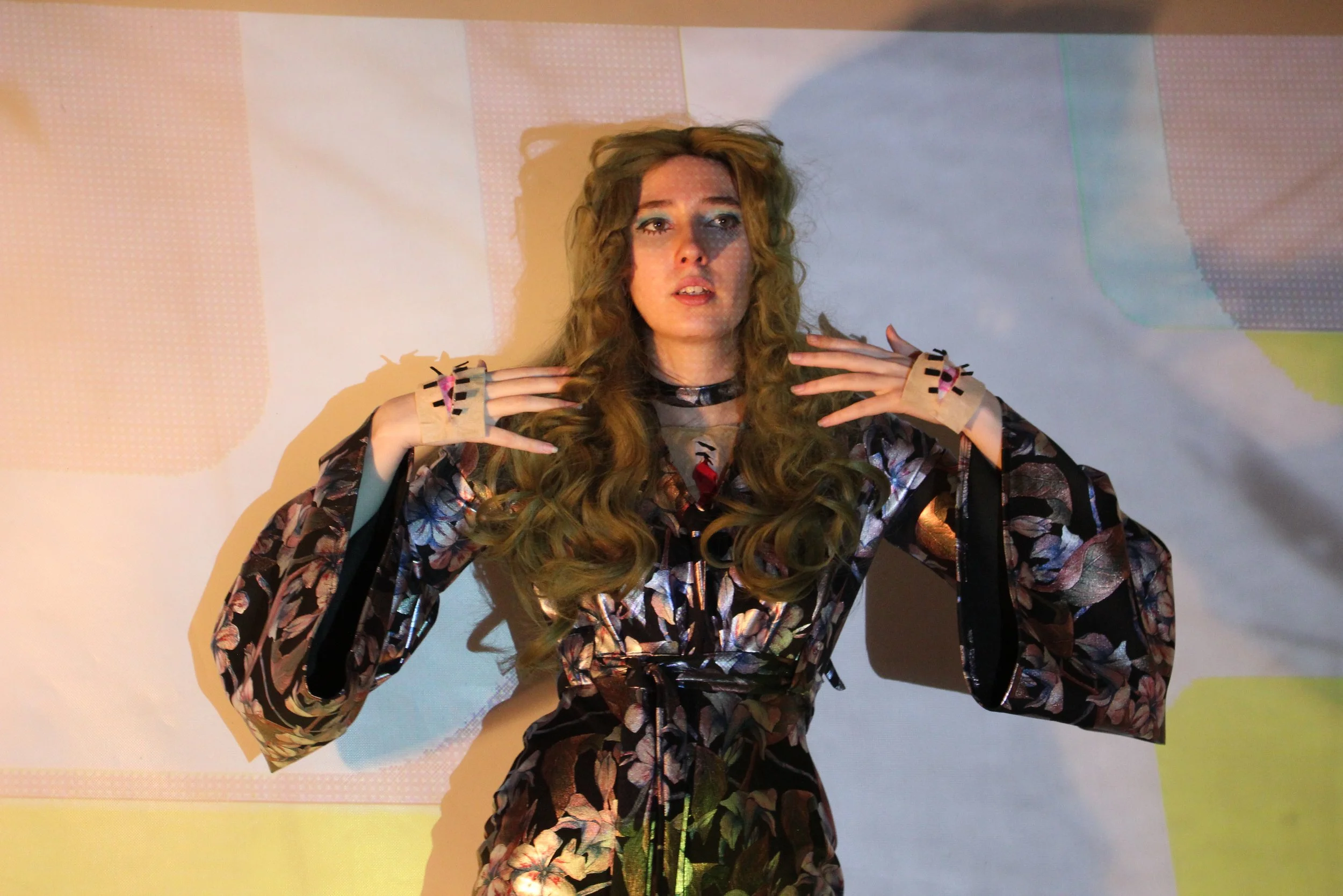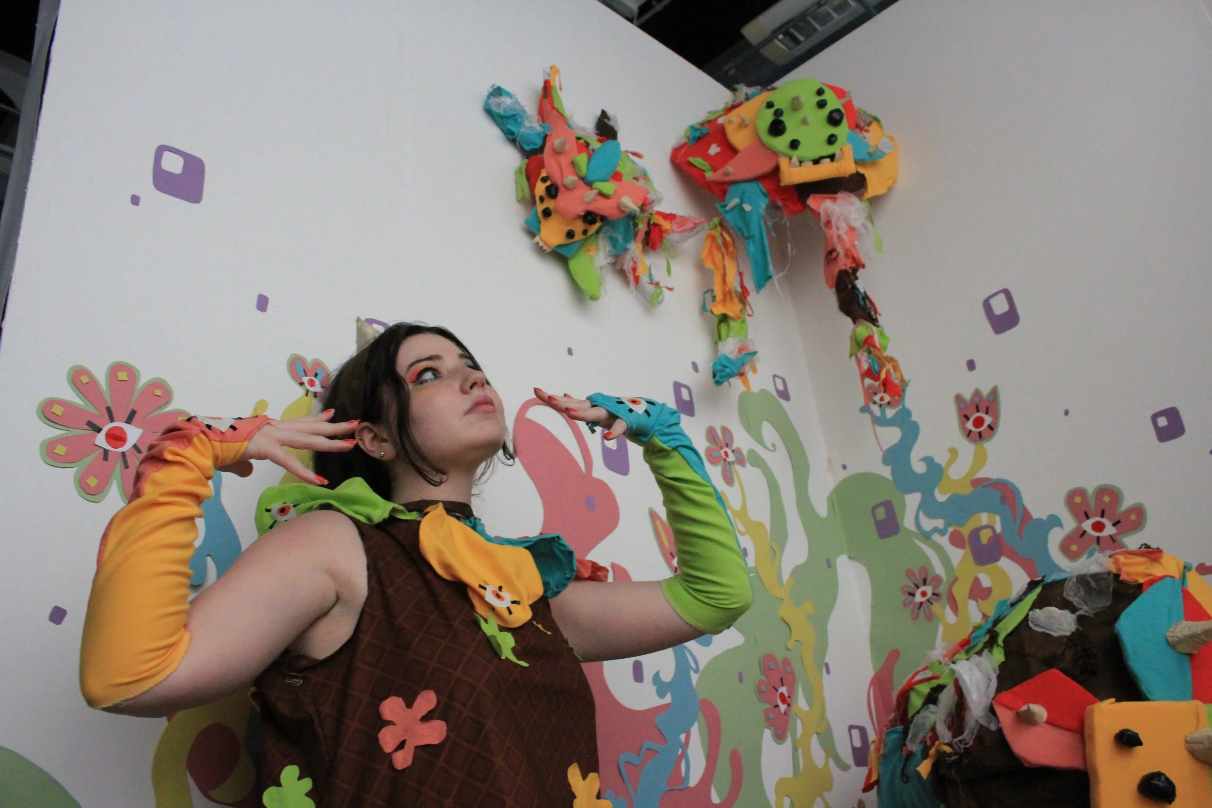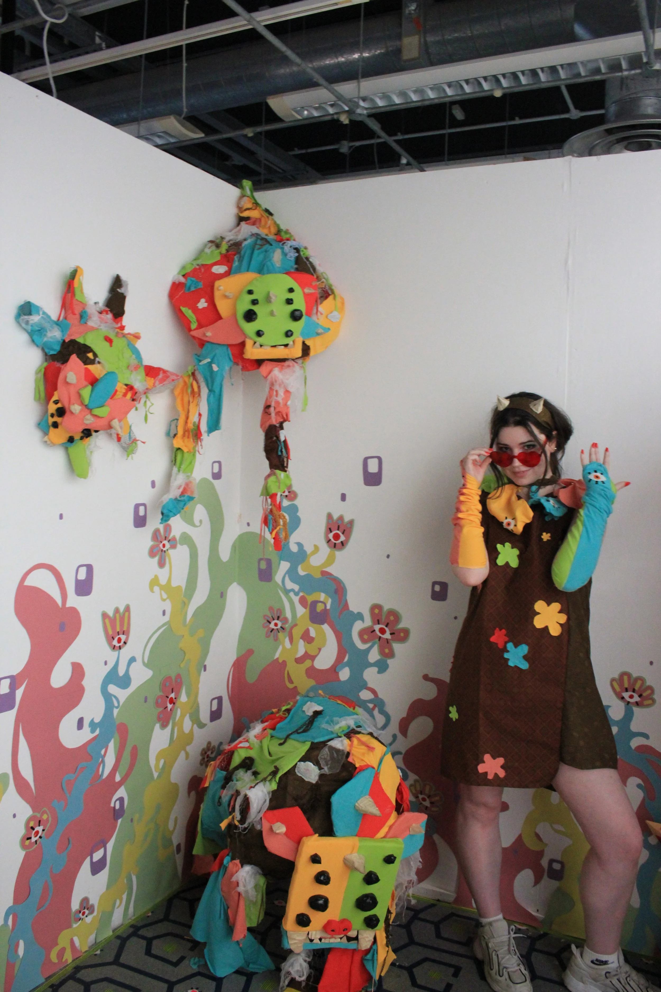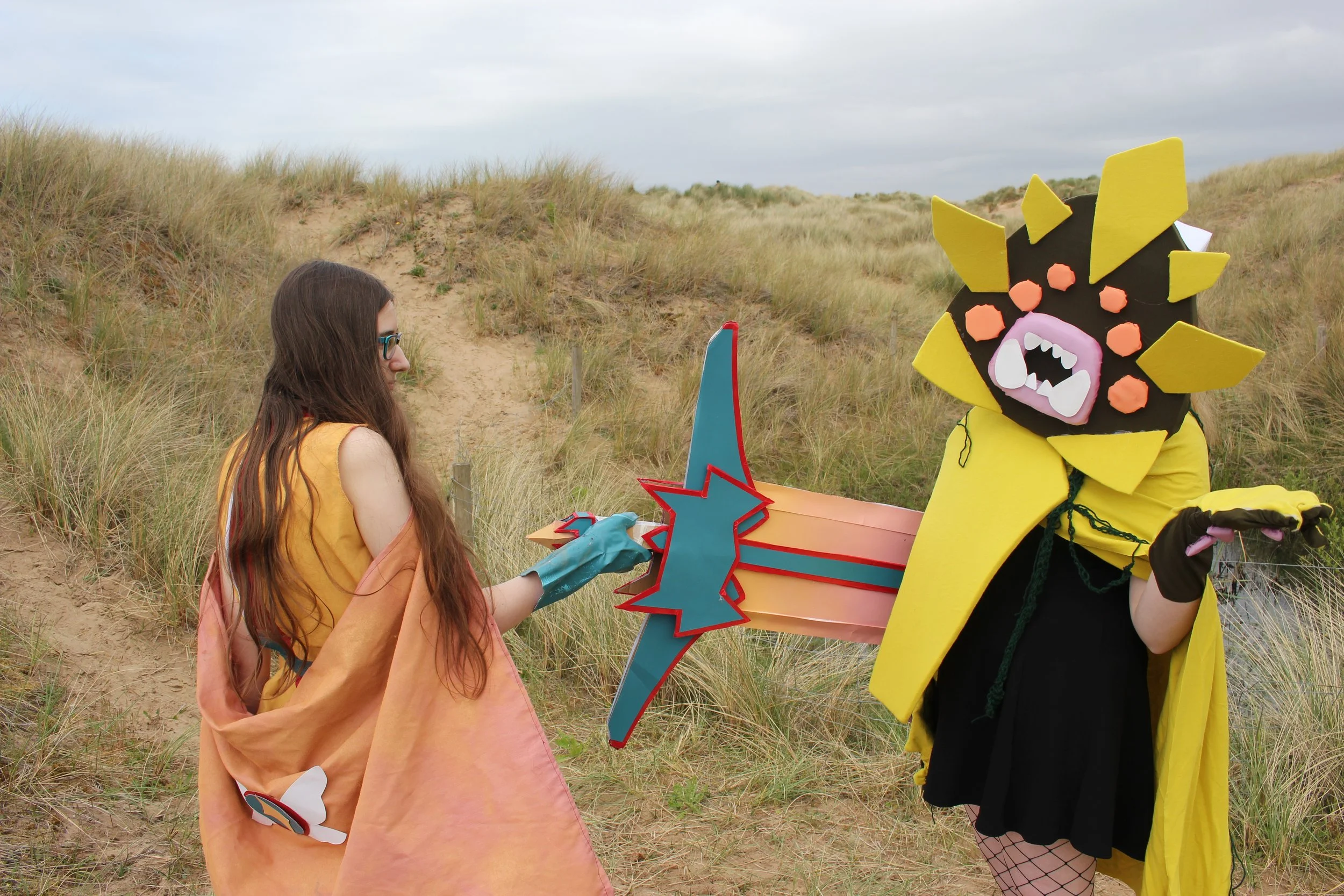 This was my final major project in Art Foundation. The main inspiration for this project was 60s and 70s retrofuturism as well as Japanese ‘tokusatsu’ shows from the 80s. The costumes I produced during this project were made with both standard and unconventional materials including knit, cotton, elastane, foam, cardboard and foil. I also used metalwork to create textile aliens for the final exhibition and vinyl electrical tape to create patterns on the floors.