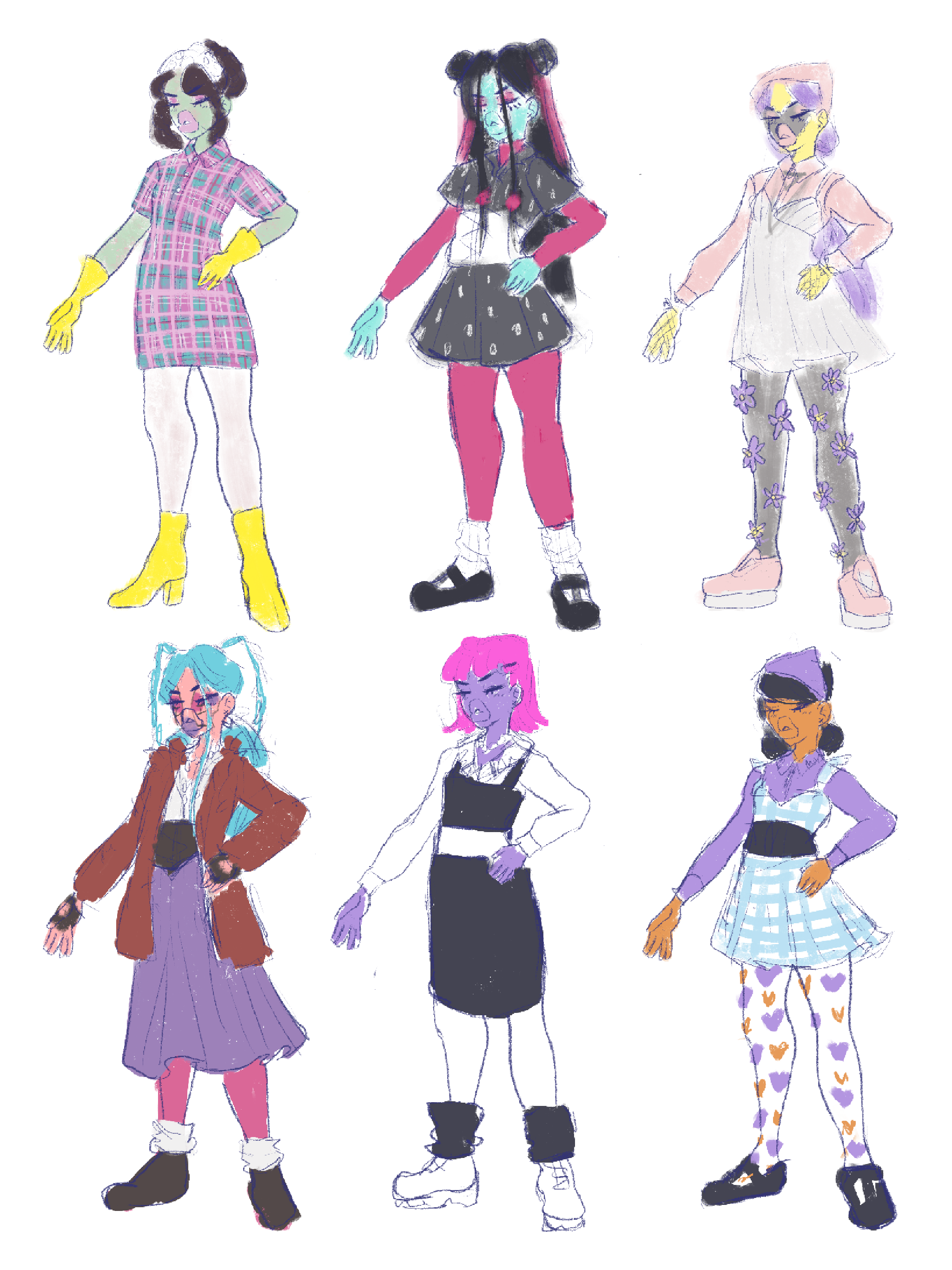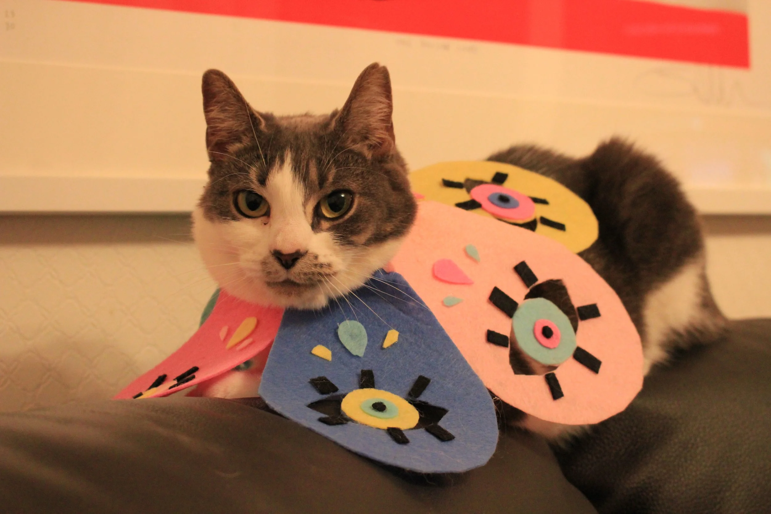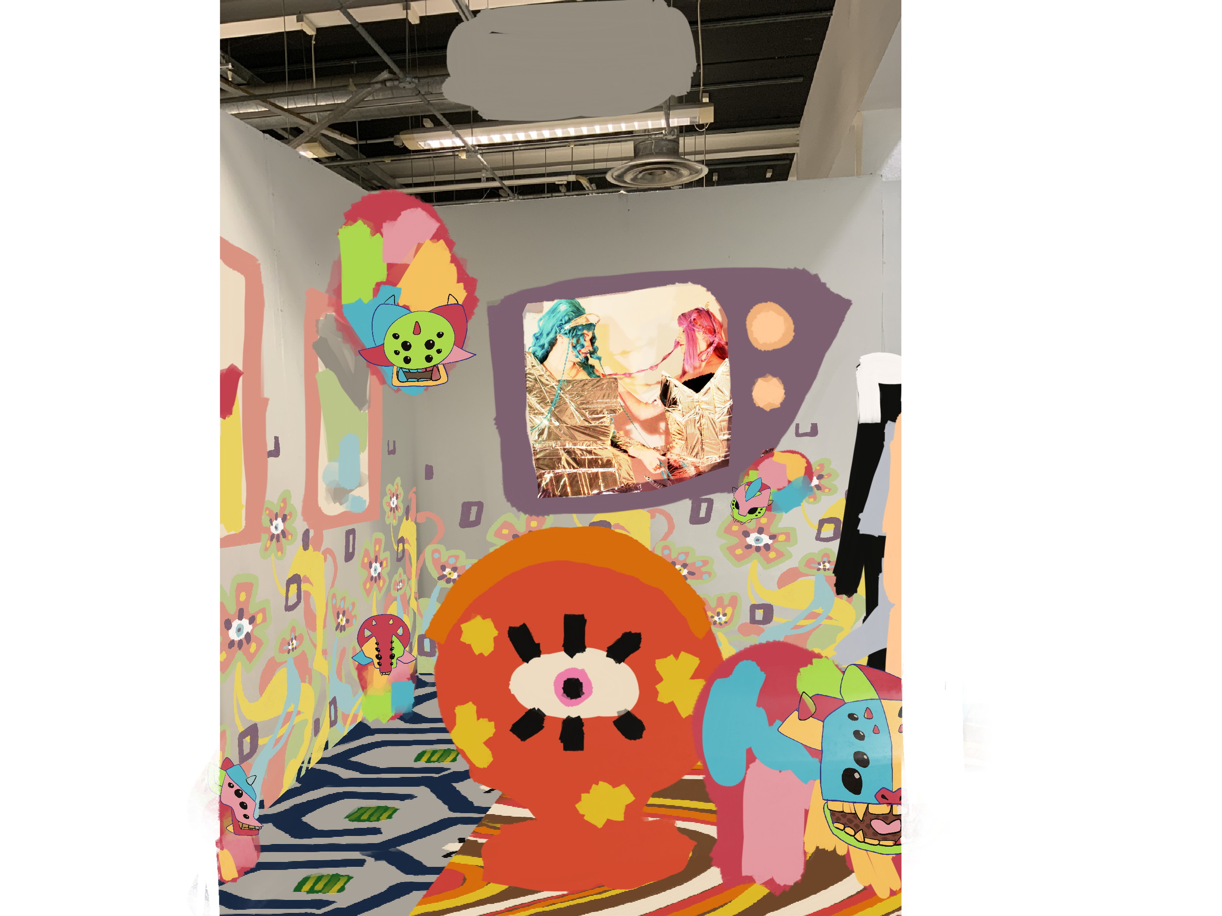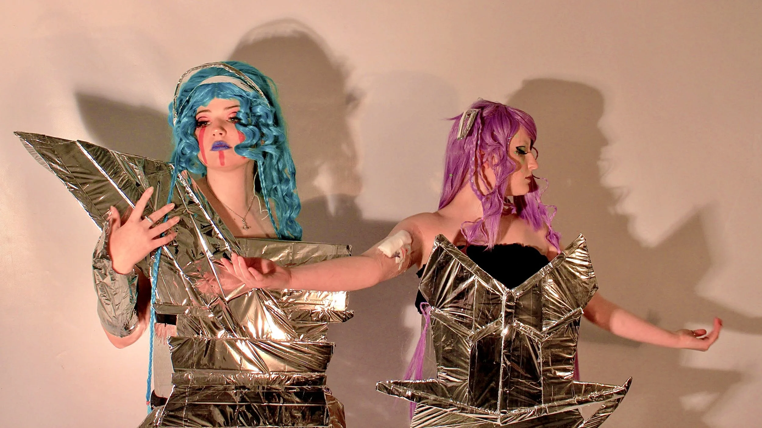 This was my final major project in Art Foundation. The main inspiration for this project was 60s and 70s retrofuturism as well as Japanese ‘tokusatsu’ shows from the 80s. The costumes I produced during this project were made with both standard and unconventional materials including knit, cotton, elastane, foam, cardboard and foil. I also used metalwork to create textile aliens for the final exhibition and vinyl electrical tape to create patterns on the floors.